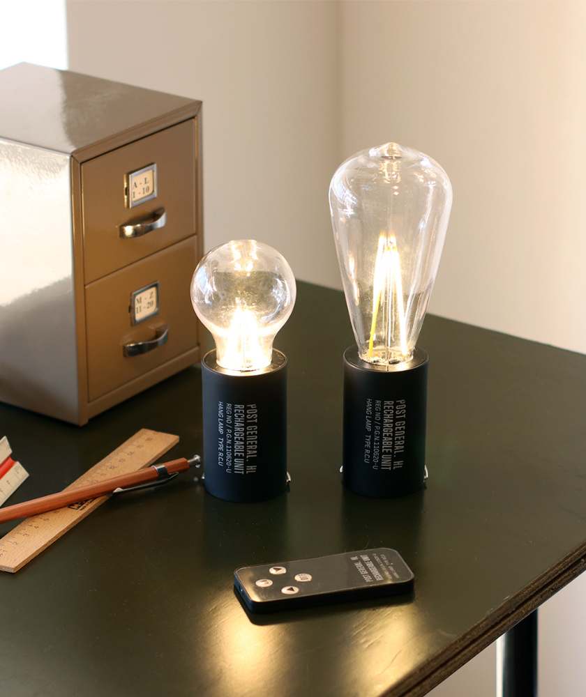 (右)付属のリモコン操作でON/OFF可能なUSB充電式仕様のLEDランプ。
