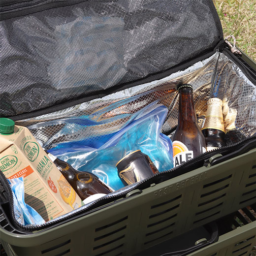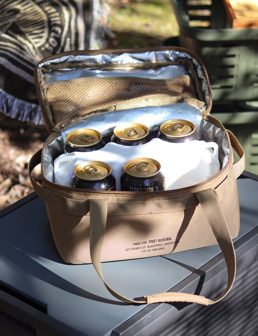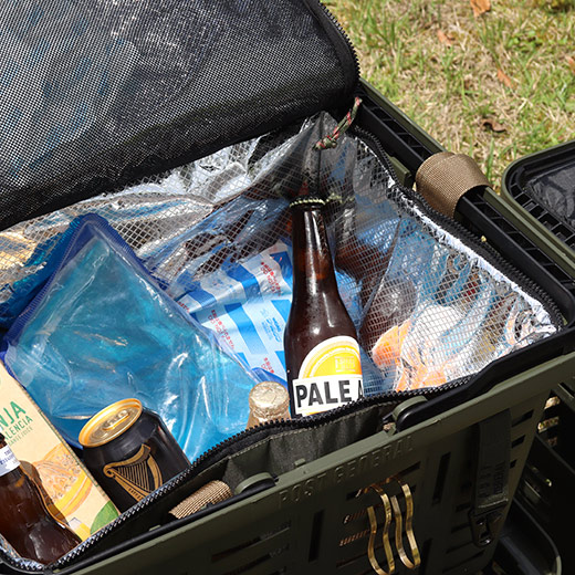 アイスエラがジャストフィットするクーラーバッグ。内側にメッシュポケットが付いているので、 アイスエラ以外の保冷剤もセットしてお使いいただけます。夏のスポーツ観戦やフェスなど、飲み物を運びたいシーンにおすすめです。