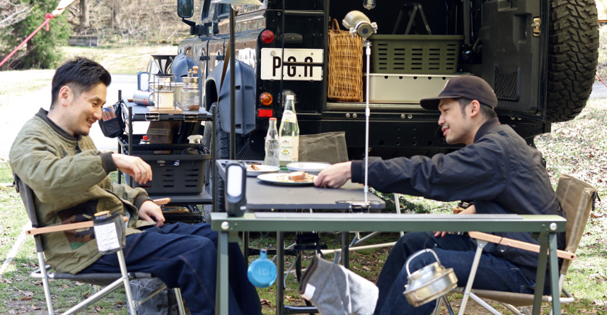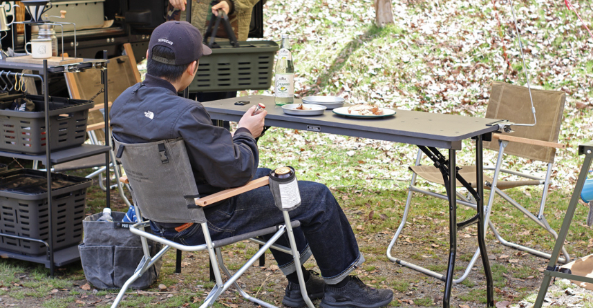 たたむとスリムになる設計。車内でもスッキリ収納出来て、アウトドアシーンで大活躍します。