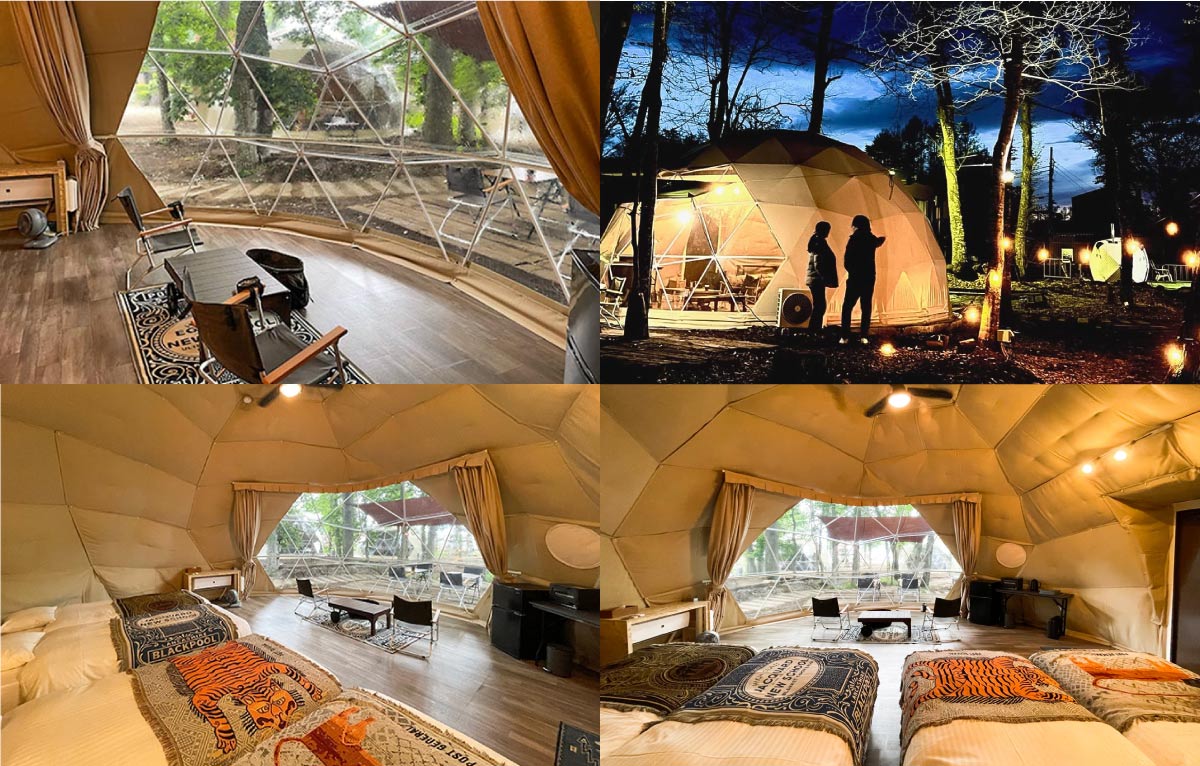 THE DAY is a multifaceted accommodation facility produced by the lifestyle goods brand "Post General," which aims to reevaluate the value of what we have now and provide new value by incorporating your essence and design. The facility includes a burger shop supervised by the popular gourmet destination in Tokyo, "Burger POLICE," as well as "THE POST GENERAL BURGER" and a shop featuring various items from the POST GENERAL brand. The dome-shaped tents built in the midst of nature's untouched forest provide an opportunity to enjoy outdoor activities like camping while ensuring a comfortable indoor stay. You can relish the outdoors without the hassle of preparing or handling camping equipment; everything is ready for you.